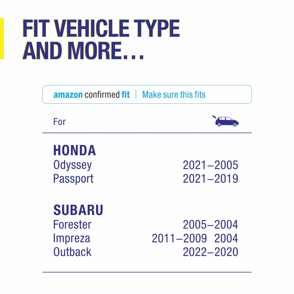 Q: What vehicles are compatible with the 5 PLUS Rear Wiper Blade 16 inch?A: The 5 PLUS Rear Wiper Blade 16 inch is designed to fit Honda Odyssey models from 2005 to 2022 and Passport models from 2019 to 2021. It is also compatible with Subaru Forester models from 2004 to 2005, Impreza models from 2009 to 2011, and Outback models from 2020 to 2022.