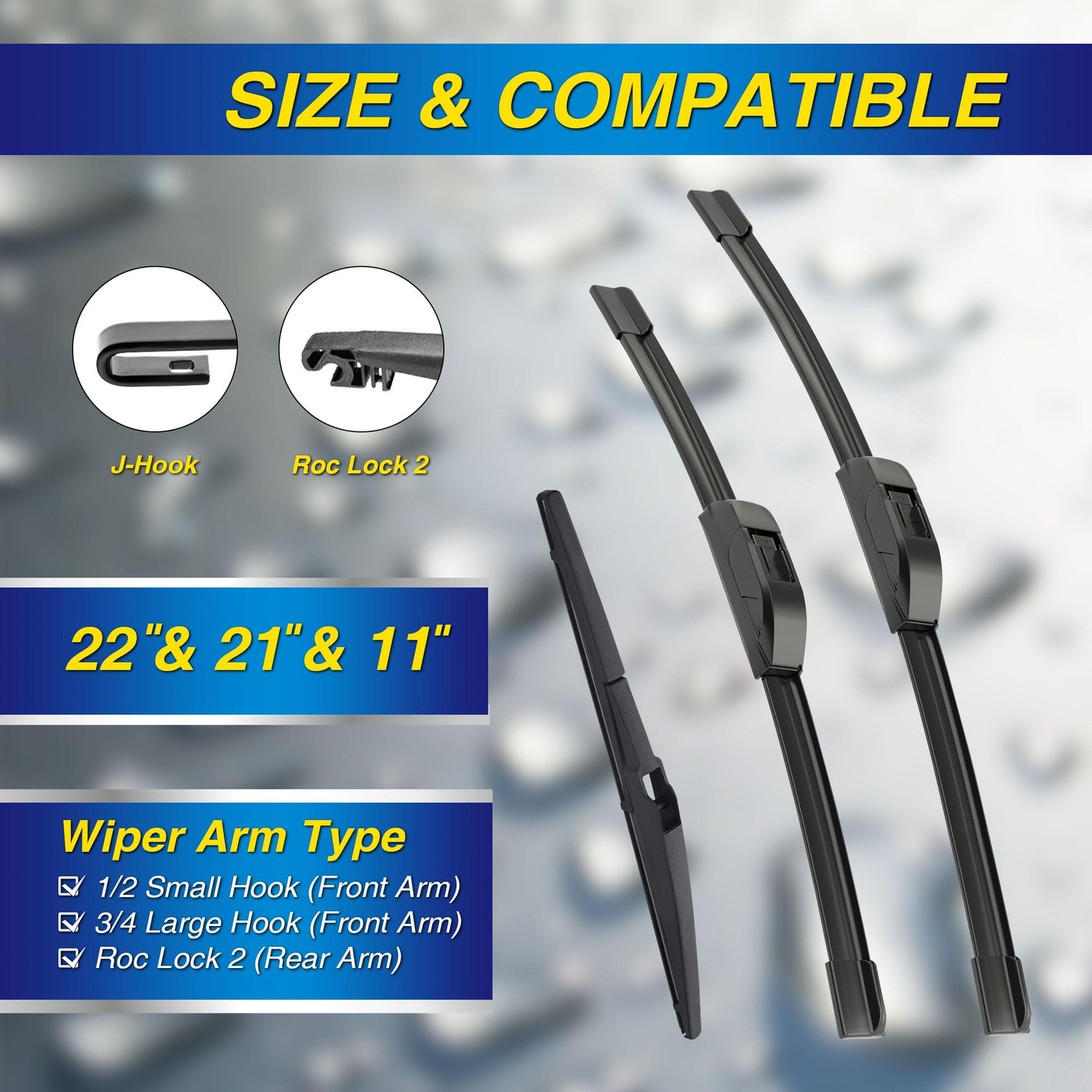 5 Plus Silicone Windshield Wiper Blades Replacement For 2021-2014 Jeep Grand Cherokee Wiper Blades(Set Of 3),Automotive Replacem