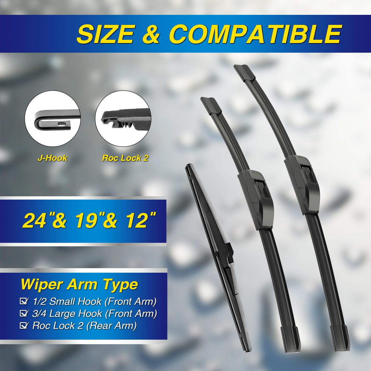 5 Plus Silicone Windshield Wipers Replacement For 2008-2020 Dodge Journey Wiper Blades(Set Of 3),Automotive Replacement Windshie