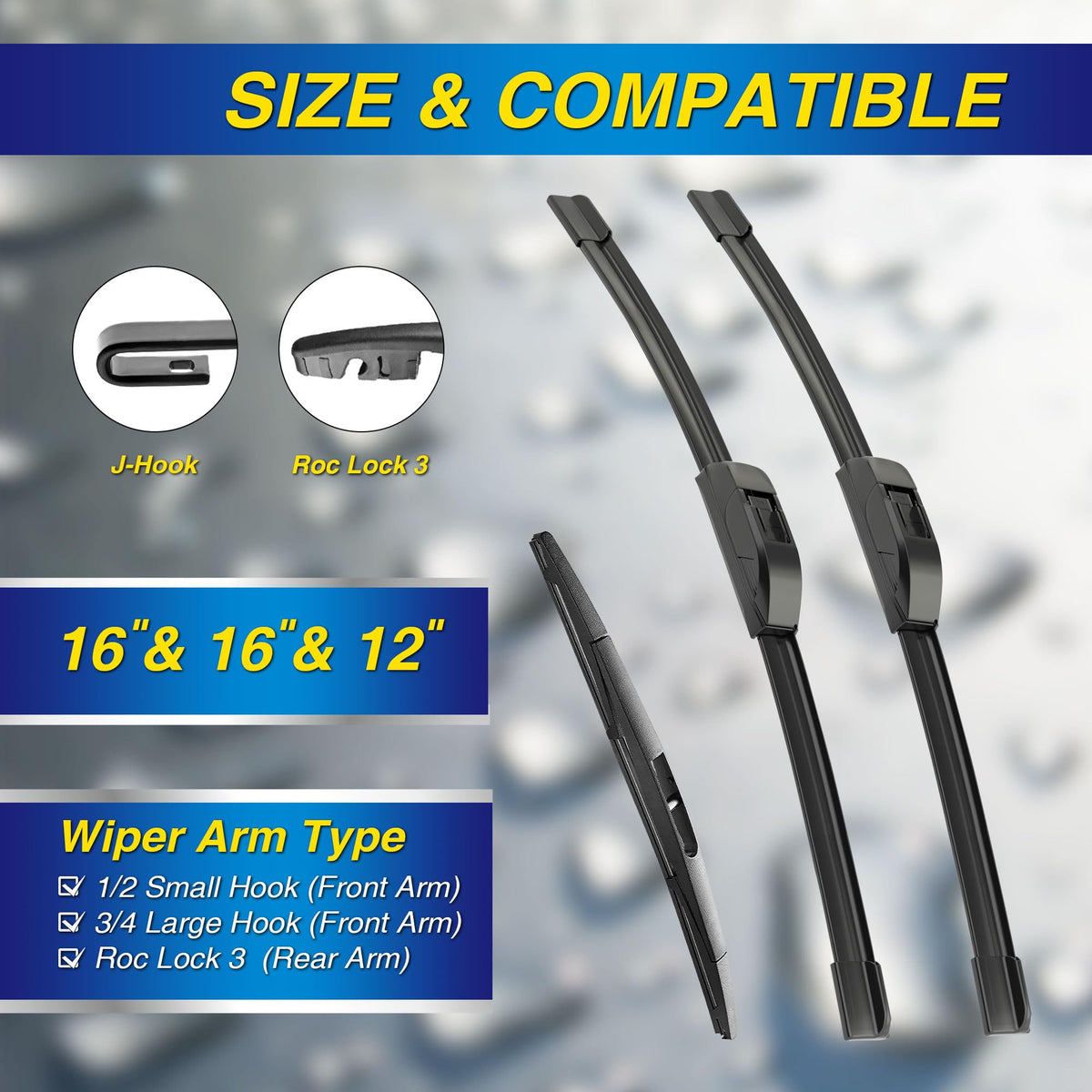 Q: What makes the 5 PLUS® Windshield Wiper Blades suitable for Jeep Wrangler models from 2018 to 2023?A: The 5 PLUS® Windshield Wiper Blades are specifically designed to fit Jeep Wrangler models from 2018 to 2023, ensuring compatibility and optimal performance. They come in a pack of three with sizes of 16 inches, 16 inches, and 12 inches, making them a perfect replacement for your vehicle's OEM wipers.