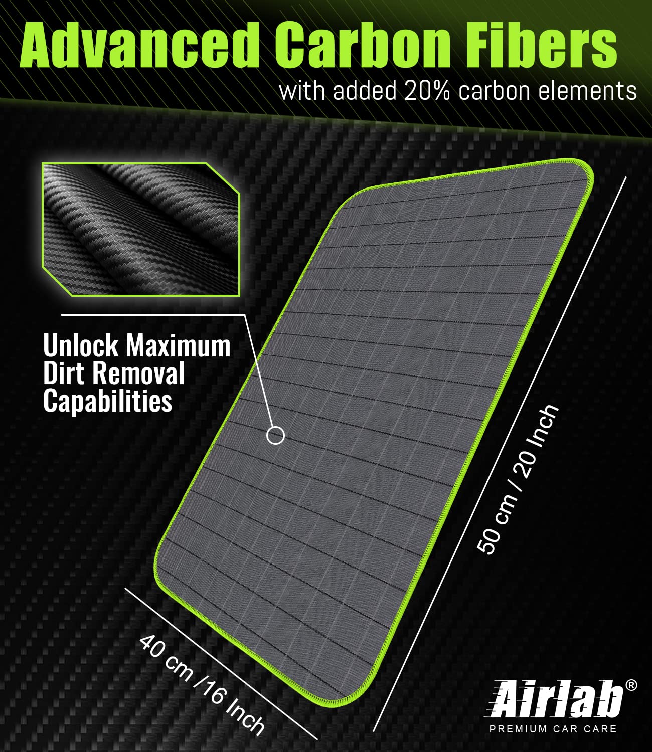Airlab Carbon Microfiber Towels For Car Glass Window Polishing Cleaning Cloth Auto Detailing Lint Free Streak Free Drying Car Wash Large Towel, Pack Of 2, 20X16, 400Gsm