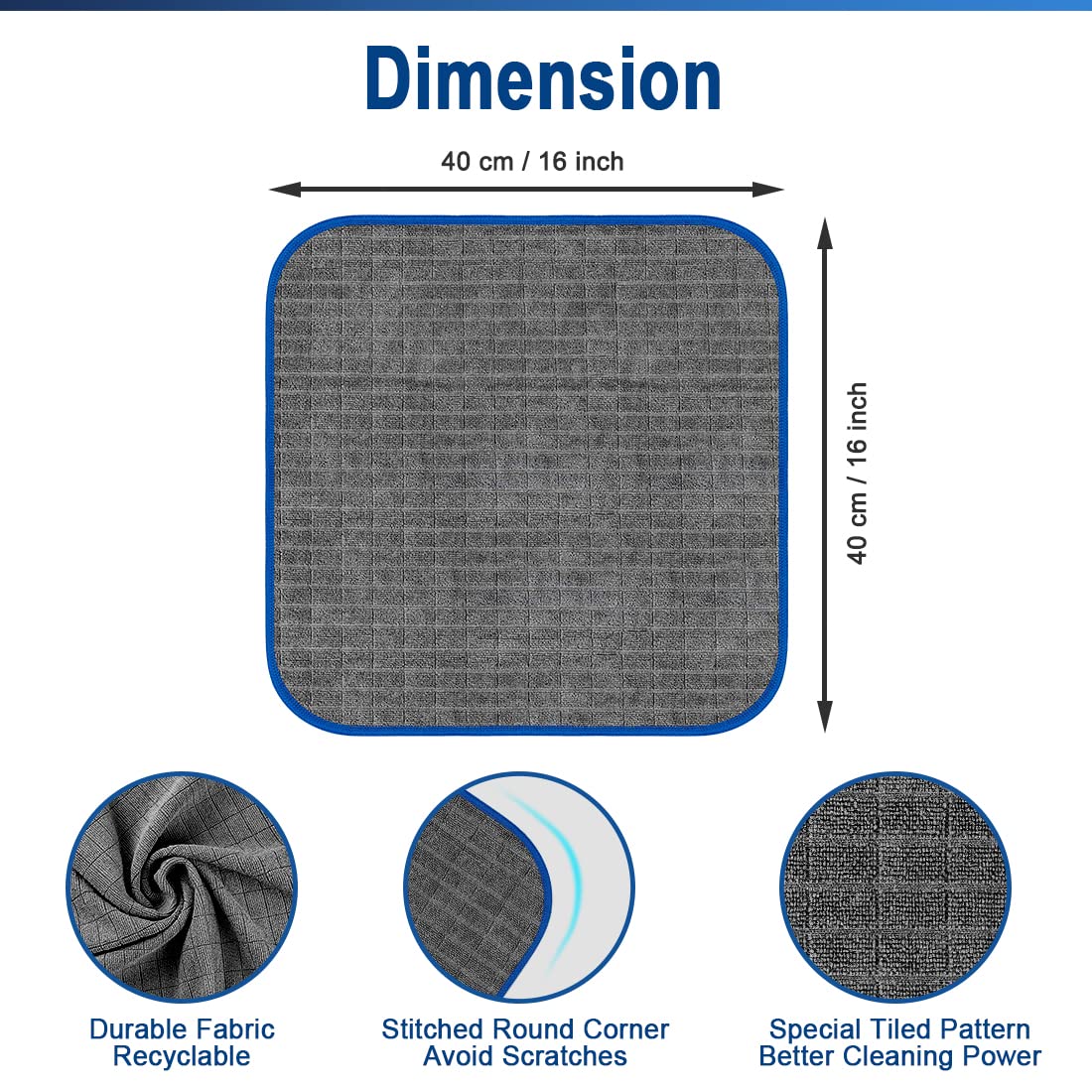 Q: What are the dimensions of the Airlab Microfiber Towels?A: The Airlab Microfiber Towels measure 16 inches by 16 inches each, making them a convenient size for handling while detailing your vehicle.