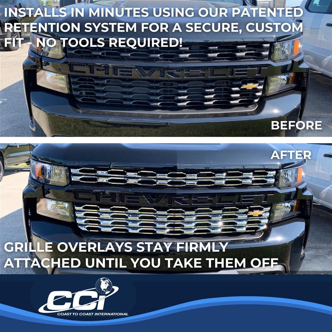 Q: Is the COAST2COAST - C2CGI167 - OVRLY compatible with all 2019 Silverado models?A: Yes, the COAST2COAST - C2CGI167 - OVRLY is specifically designed to fit all 2019 Chevrolet Silverado models, providing a perfect fit and enhanced aesthetics.