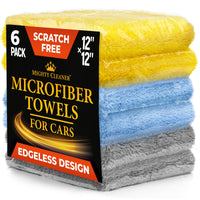 Trying to keep your sweet ride like new, its hard to find the best edgeless microfiber towels for cars which will not scratch delicate surfaces and keep them in pristine condition. MIGHTY CLEANER is proud to provide you with some of the best professional car care products on the market for car enthusiasts. Since 2005, our customers have relied on our premium microfiber car drying towels to keep their vehicles looking great. If you love your car and want to keep it clean and shiny, our drying towels car detailing are the best solution. MIGHTY CLEANER boasts significant advantages over regular polishing microfiber cleaning cloths for cars for cars that allow you to keep your car in mint condition with minimal effort. A Unique 100% edgeless thick microfiber cleaning cloth wont scratch your cars dashboard or touch screen nor the delicate surfaces of your vehicle. The furry fabric of our microfiber cleaning cloth for cars picks up dust from hard-to-reach nooks and reliably holds it until you remove it. The compact 12 x12 size allows them to be tucked away in your car, but easily accessible for when you need them. Exceptionally soft, MIGHTY CLEANER microfiber car cleaning cloth is the best car care tool for people who are crazy about the cleanliness of their sweet rides. This buffing car wash towels drying provides a quick and perfect shine and removes every piece of dust from the smallest nooks. Our microfiber car towels pack is reasonably priced and include 6 car detailing towels - 3 black and 3 yellow. Separate car cleaning towels for different needs, or mix-n-match them. So, the next time youre stuck choosing a set of microfiber cloth for car, remember that MIGHTY CLEANER car microfiber cleaning cloth is the best choice for your car or home - no doubt! Check out our full product line for all of your favorite car care products.