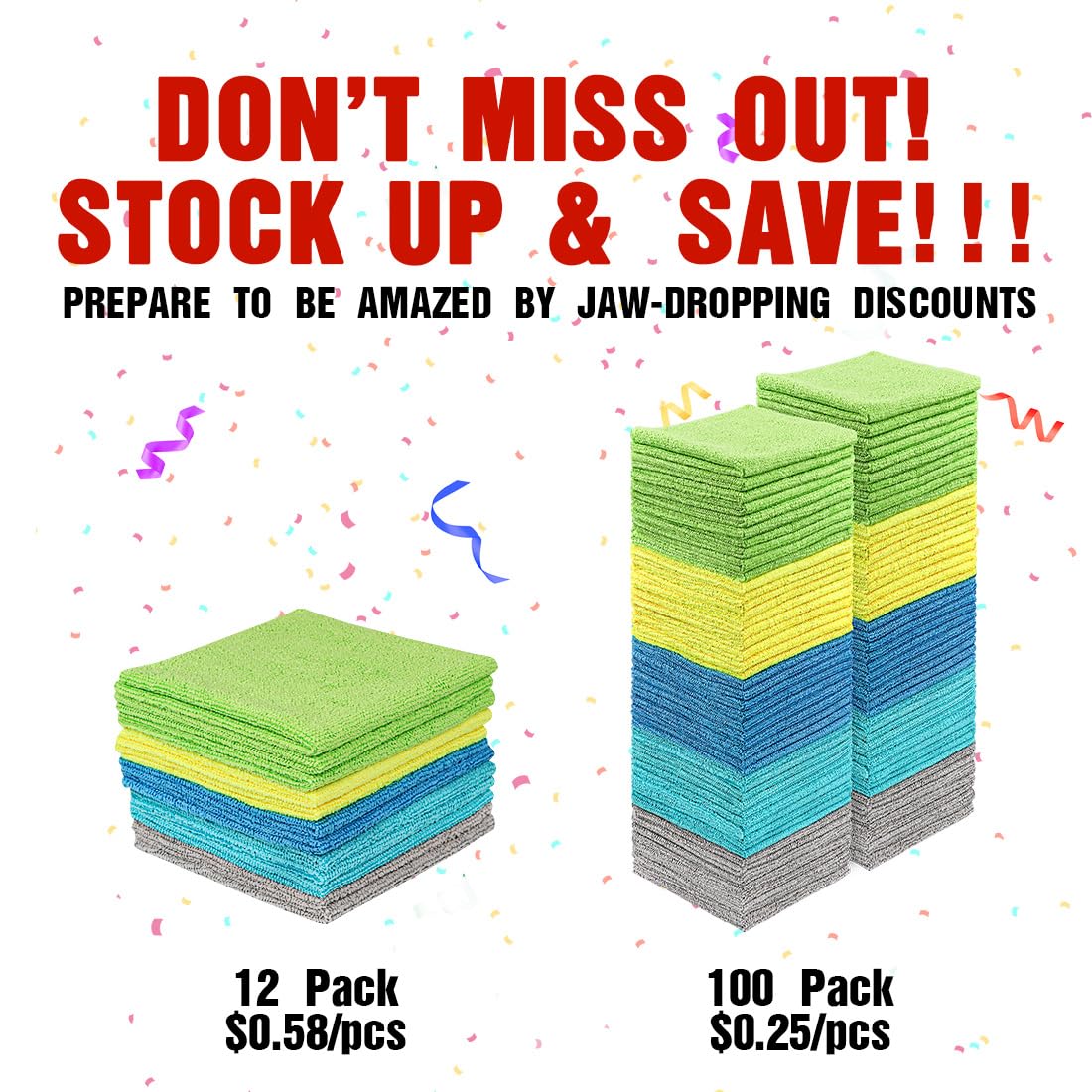 Homexcel Microfiber Cleaning Cloths 100 Pack, Highly Absorbent Microfiber Towels, Lint & Scratch-Free Cleaning Rags For House, K