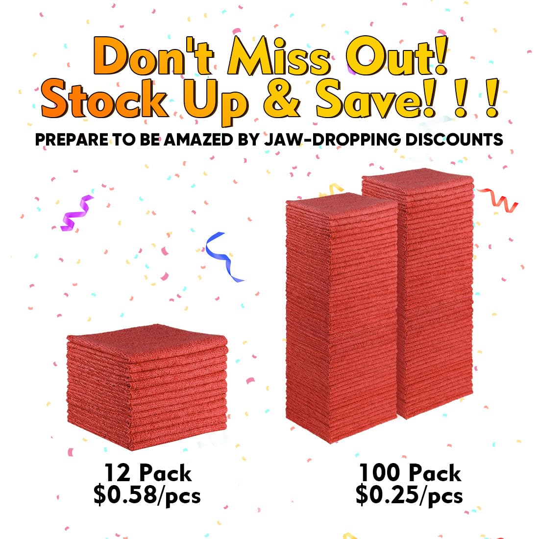 Homexcel Red Shop Towels 100 Pack, Reusable Microfiber Cleaning Cloth Bulk, Multipurpose Microfiber Towels For Car, House And Ki