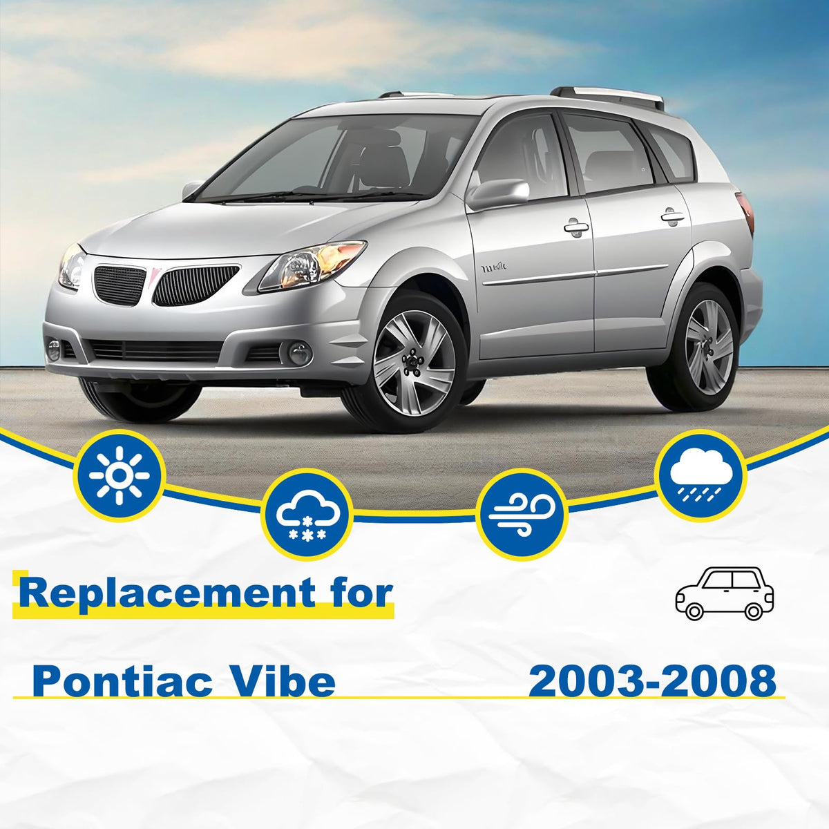 Q: What vehicles are compatible with the HRSNO windshield wipers?A: The HRSNO windshield wipers are specifically designed to fit Pontiac Vibe models from 2003 to 2008, including both the front and rear wiper blades.