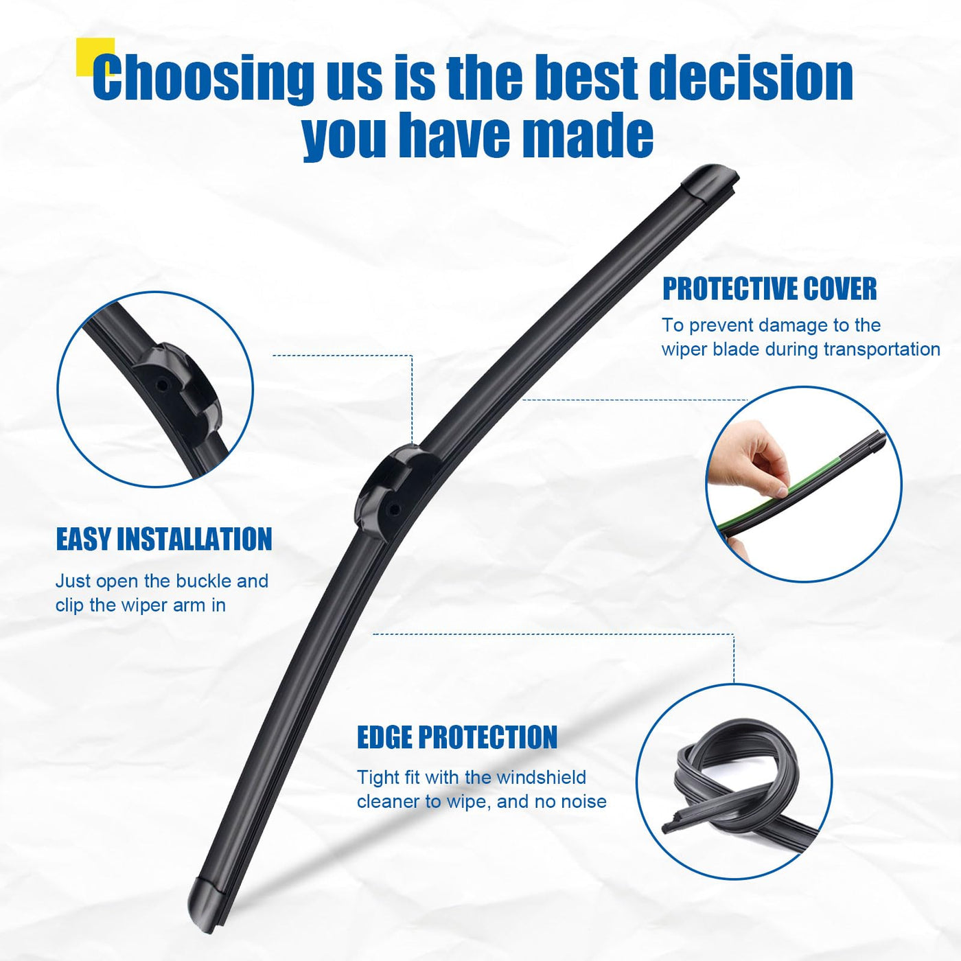 Q: How easy is it to install the HRSNO wiper blades?A: The HRSNO wiper blades feature a J-HOOK arm design, allowing for tool-free installation. This means you can replace your wiper blades quickly and securely without needing additional hardware or adjustments.