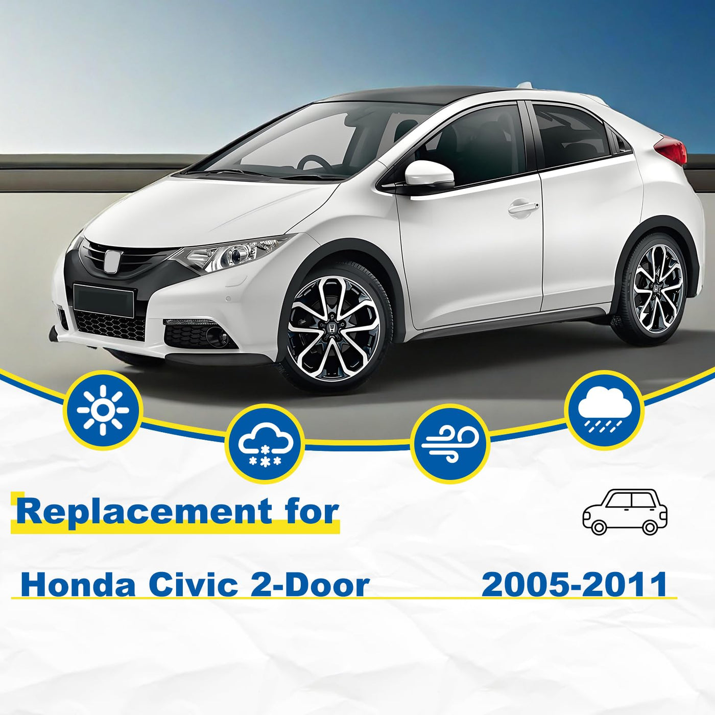 Q: What vehicles are compatible with the HRSNO windshield wiper blades?A: The HRSNO Quality All-Season Premium Windshield Wiper Blade Replacement is specifically designed for the Honda Civic models from 2005 to 2011.