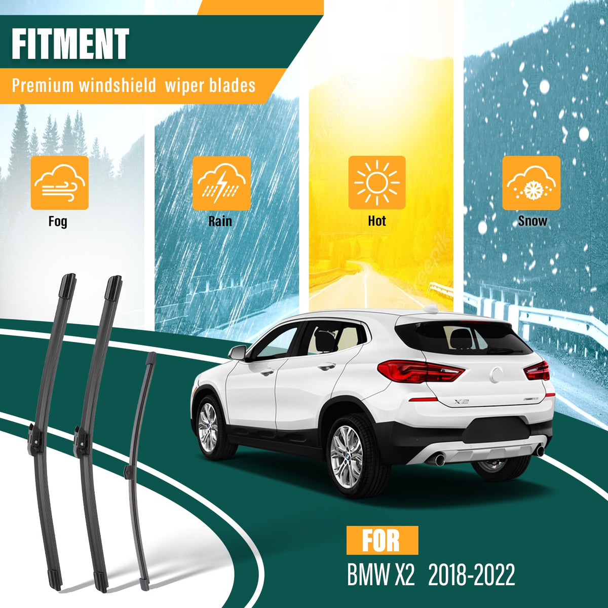 Kvq Windshield Wiper Blades Replacement For Bmw X2 2018 2019 2020 2021 2022 Original Factory Quality Front Rear Wiper Blade Set