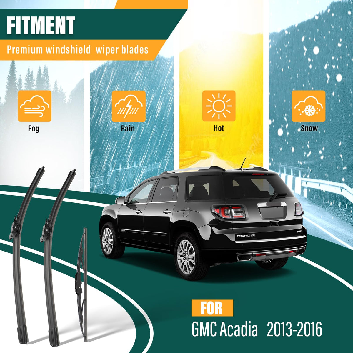 Kvq Windshield Wiper Blades Replacement For Gmc Acadia 2013 2014 2015 2016 Original Factory Quality Front Rear Wiper Blade Set -