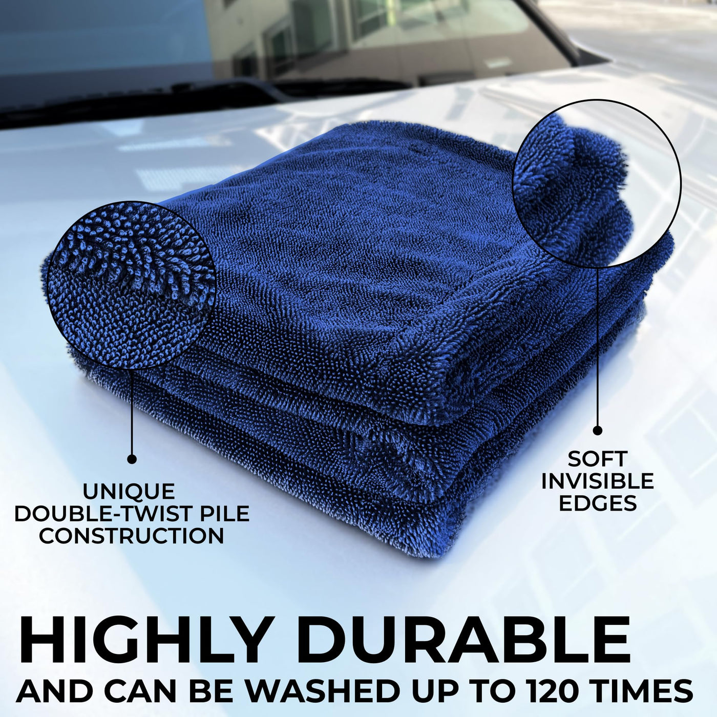 Microfiber Car Drying Towel 1300 GSM Double Twisted Loop - Premium Extra Large Auto Wash Towel for Cars Trucks SUV - Super Absor