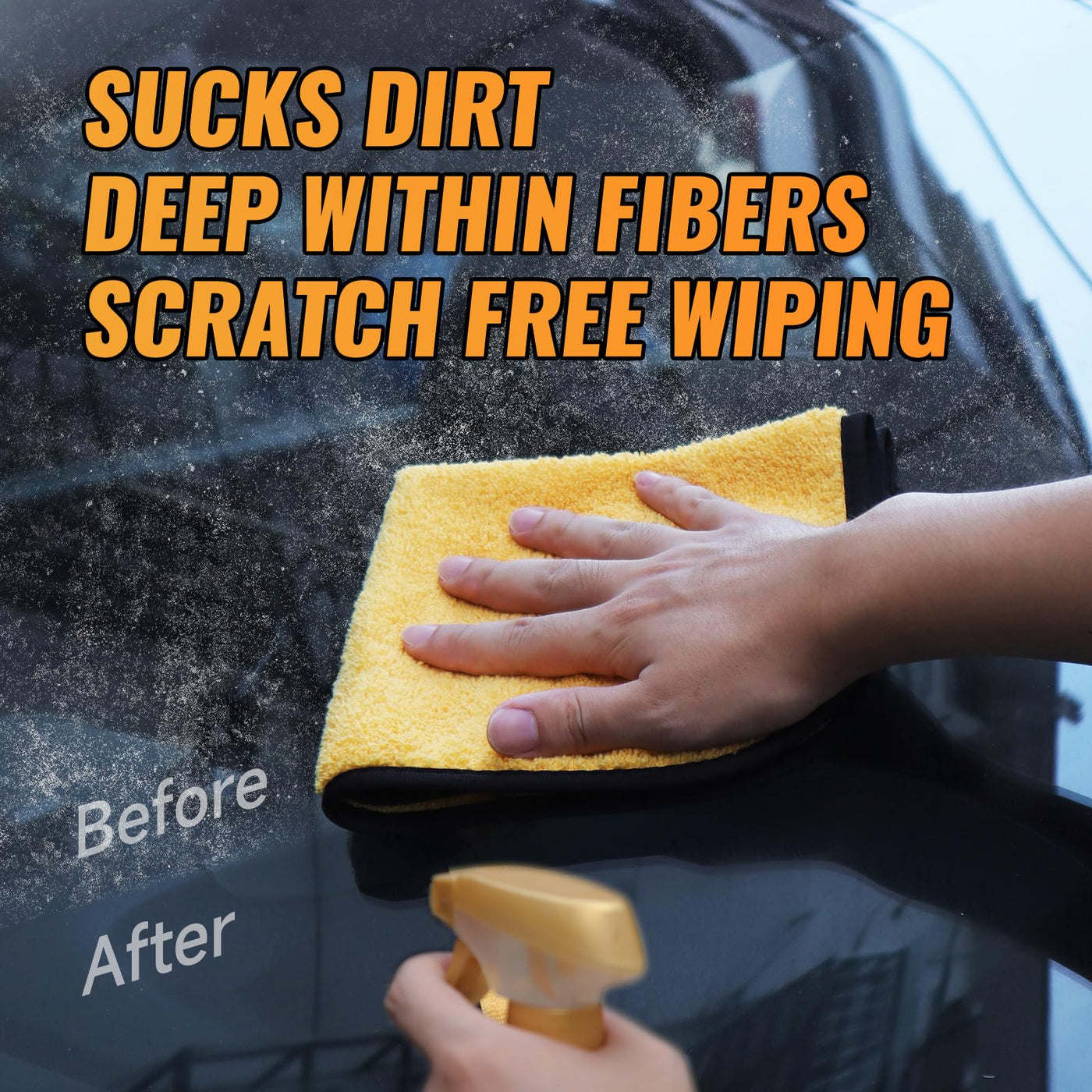 MRD'S HOME Professional Grade Premium Microfiber Towels are made of 85% polyester, 15% Polyamide and use ultra-soft microfiber dual-weave edge design to help prevent any swirls or scratches on automotive surfaces. 16'' x 14'' towel,Ideal for car washing supplies,the plush side is perfect for removing dirt and debris,while the soft side is ideal for polishing and buffing,lint free and without fear of scratching the surface. Capable of absorbing up to 10 times its weight in water, Ideal for drying your car quickly and spotless after car washing,reusable car towel for effective cleaning.Hand or machine wash in warm water under 60?.