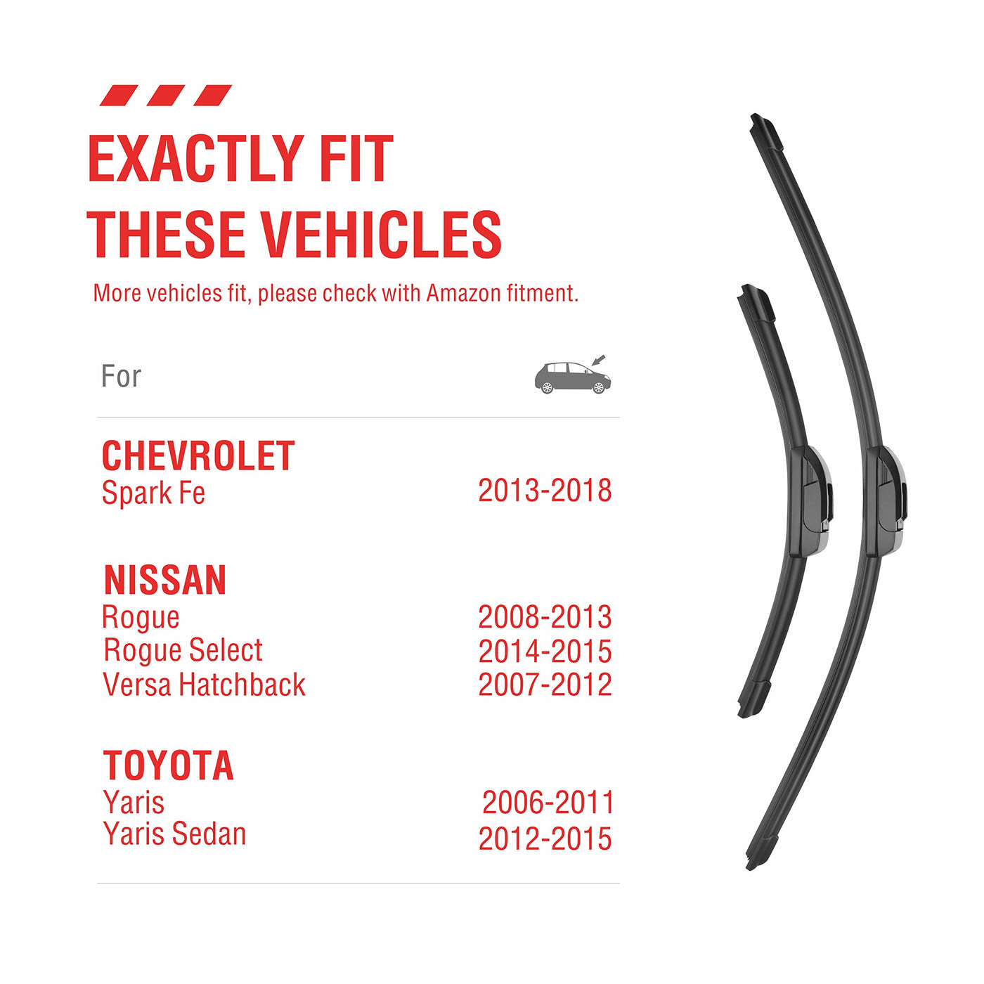Q: What vehicles are compatible with the OEM Quality Performance Premium Windshield Wiper Blades?A: These wiper blades are specifically designed to fit the Santa Fe models from 2013 to 2018, Nissan Rogue models from 2008 to 2013, and Toyota Yaris models from 2006 to 2011, among other vehicles.