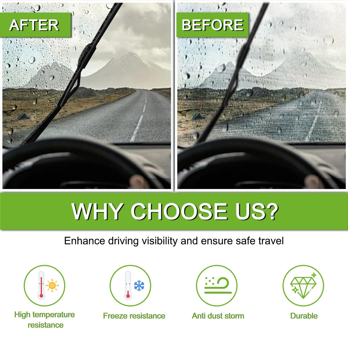Q: How easy is it to install these wiper blades?A: These wipers are designed for easy installation, allowing you to replace your old wiper blades without any specialized tools. The complete set includes instructions for a hassle-free setup.