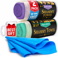 Premium 2Pk + 1 Free Shammy Cloth For Car Drying - (26X17) - Super Absorbent Chamois Towel For Car - Reusable Shammy Towel For Car - Scratch-Free Car Drying Towel