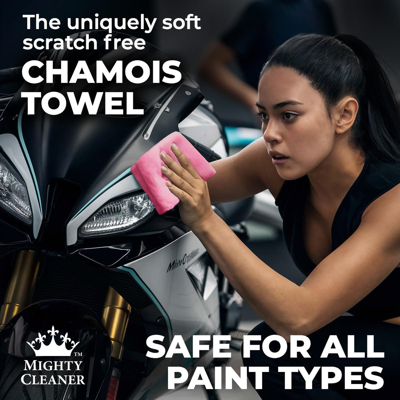 Due to the compact size, our chamois towel for car is the perfect accessory for any driver on the go, whether you are on the run from the cops or going for a drive to visit a relative. Our shammy cloth for car drying fits in your glove or armrest compartment. Since 2005, our customers have relied on our premium car care accessories to keep their vehicles looking great. Our shammy towel for car will take on all jobs, big or small. Why do leading professionals use our chamois cloth for car drying? This compact-sized car shammy for drying is great for washing and drying your vehicle or bike rims and hard-to-reach areas. They fit perfectly in a small storage compartment . Our synthetic chamois absorbs up to 10x its weight while acting as a sponge to dry your car or motorcycle quickly without smearing or streaking. MIGHTY CLEANER will provide you with a three-pack kit of car chamois for drying cars that is made from high-quality synthetic material. The small size (17 x13 ) makes it the ideal car drying shammy for those tight areas of your vehicle. This practical size allows you to reach your vehicles smallest nooks and crannies, whereas a large rag will not be able to accomplish the task. The multi-purpose nature of our car wash shammy can be used for more than car care. Its also perfect for soaking up carpet spills, cleaning the kitchen, and washing shower tiles. This makes it better than a paper towel because it doesnt weaken when it soaks up liquid. Chamois car drying towel is designed to be durable and long-lasting. Your shammies for drying cars kit also comes with an extra towel for you to keep as a helping hand. For best results, store your chamois car cloth slightly damp, in its storage tubes to prevent them from hardening. By taking care of your MIGHTY CLEANER products properly, they will serve you for many years.
