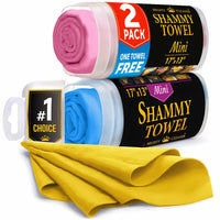Premium 2Pk Mini +1 Free Shammy Cloth - Super Absorbent Chamois Towel - Reusable Scratch-Free Car Drying Towel - 17'X13'