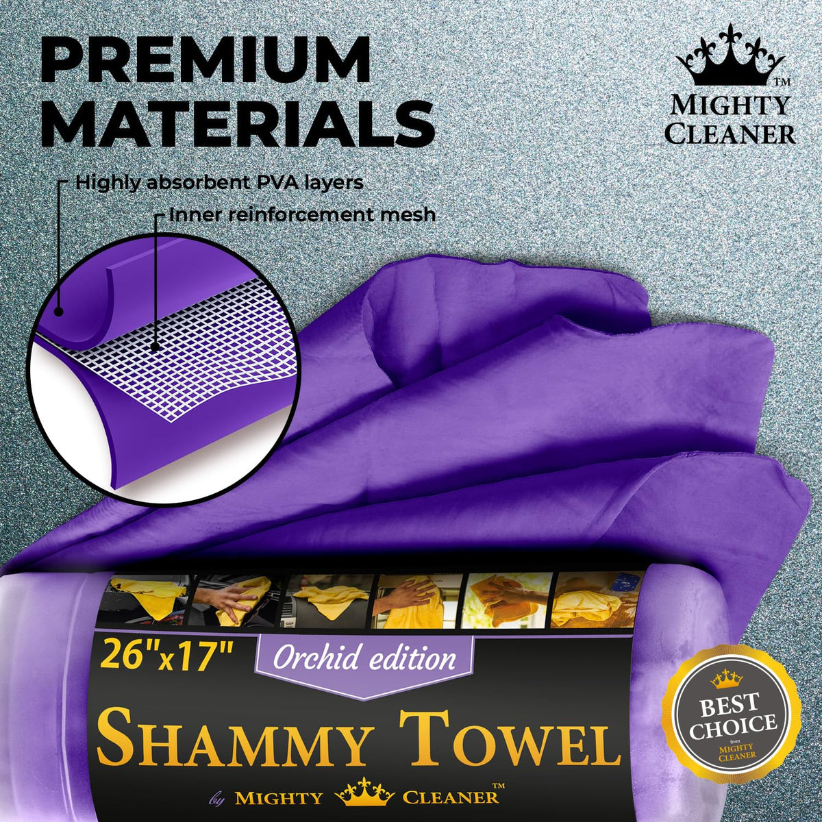 We are sure that the average car care products are not for you. MIGHTY CLEANER is proud to provide you with some of the best professional car care products on the market. Since 2005, our customers have relied on our premium car care accessories to keep their vehicles looking great. So, rest assured, our chamois towel for car will meet all your cleaning needs. Why do leading car care professionals use our shammy cloth for car drying? MIGHTY CLEANER shammy towel for car has the holding power to absorb 10x its weight! It acts like a sponge to dry your car quickly and gives it a sparkling shine without smearing or streaking. Your chamois cloth for car drying was delicately crafted from polyvinyl alcohol (PVA). It removes dust and small dirt particles without scratching your cars finish. Our car shammy for drying allows you to remove every last drop of moisture after washing, quickly and efficiently. If used properly, synthetic chamois will serve you well for many years. MIGHTY CLEANER car chamois for drying cars perfectly dries your cars exterior and makes dust removal from your cars interior a snap. Clean the dashboard, door pockets, or leather seats. Your car drying shammy is also ideal for many household tasks, such as soaking up carpet spills, cleaning bathroom and shower tiles, and leaving windows squeaky clean. This makes it a universal car wash shammy. Our chamois car drying towel is designed to be long-lasting. With proper maintenance, it will serve you for many years. Remember to store your shammies for drying cars in their convenient storage tube while not in use. To preserve the life of your chamois car cloth, they should be stored slightly damp to prevent the cloth from hardening. By storing your MIGHTY CLEANER cloth properly, it will be ready for use at a moments notice.