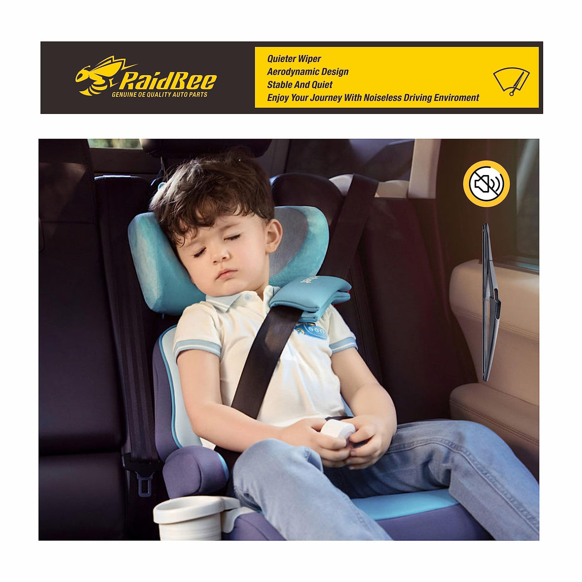 Q: What makes the Raidbee Rear Wiper Blade unique compared to other wiper blades?A: The Raidbee Rear Wiper Blade features a flexible design that ensures a quiet and smooth, virtually streak-free wipe. Made from high-quality rubber, it is sturdy and durable, providing long-lasting performance and reliability.