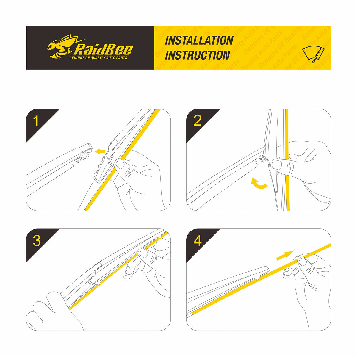 Q: How do I install the Raidbee Rear Wiper Blade?A: Installation is straightforward. Simply remove your old wiper blade, align the new Raidbee Rear Wiper Blade with the wiper arm, and secure it in place. Detailed instructions are usually included in the packaging.
