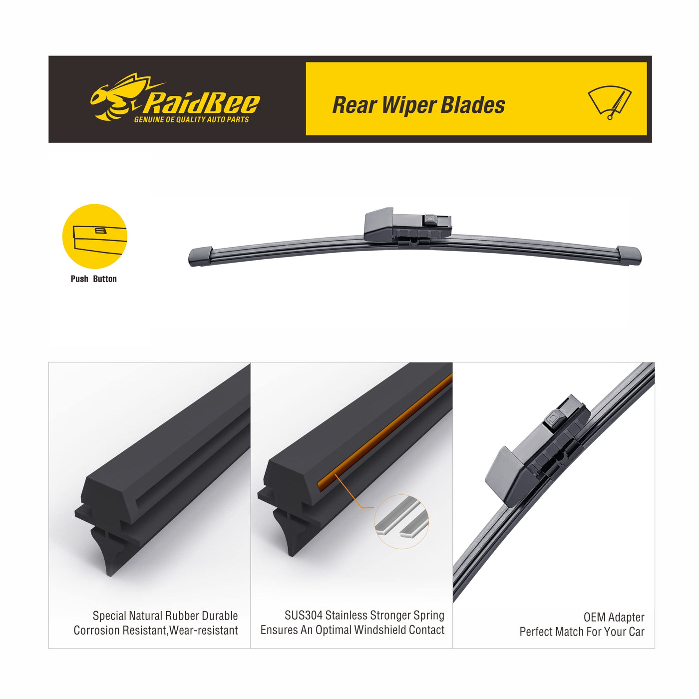 Q: How do I install the RaidBee Rear Wiper Blade?A: Installation of the RaidBee Rear Wiper Blade is straightforward; simply remove the old wiper blade from the arm and attach the new blade by following the included instructions for a secure fit.