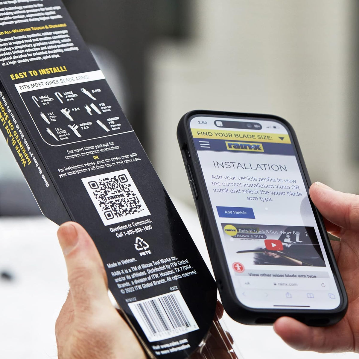 Q: Can I install these wiper blades myself, or do I need professional help?A: The Rain-X Truck & SUV wiper blades are designed for quick and easy installation, making it possible for most users to install them without professional help. Installation videos are also available by scanning the QR code on the packaging.