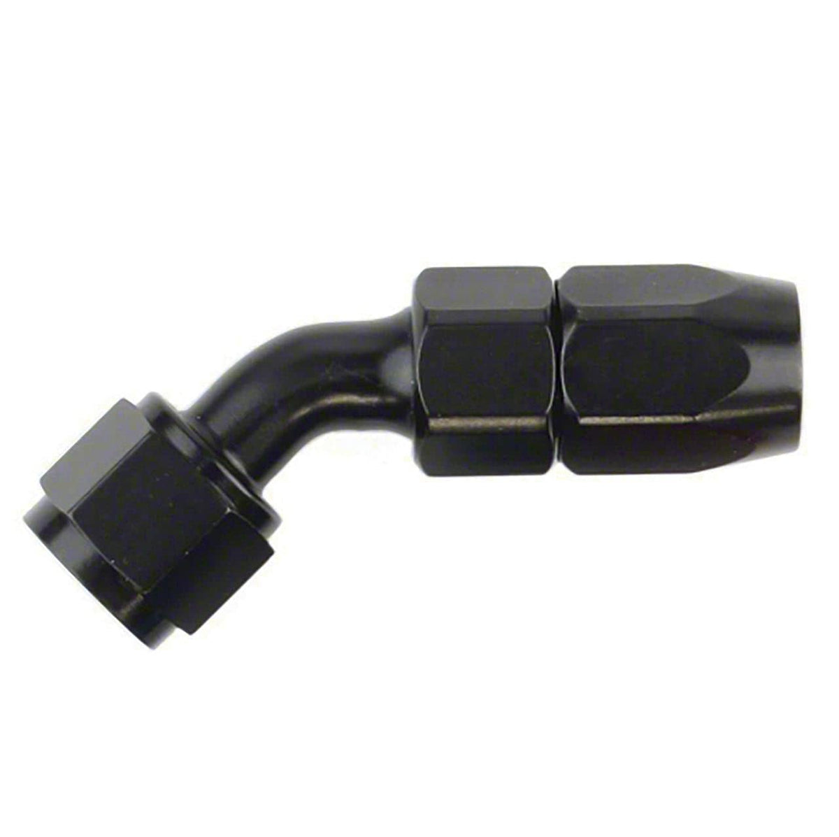 Q: What is the advantage of using Speedfx 511245BK -12an X 45 Blk Hose End?A: The Speedfx 511245BK hose end features a 37-degree angled sealing surface that ensures a complete seal, enhancing performance and preventing leaks. Its FKM O-ring allows for up to 360 degrees of rotation, providing maximum adjustability during installation.