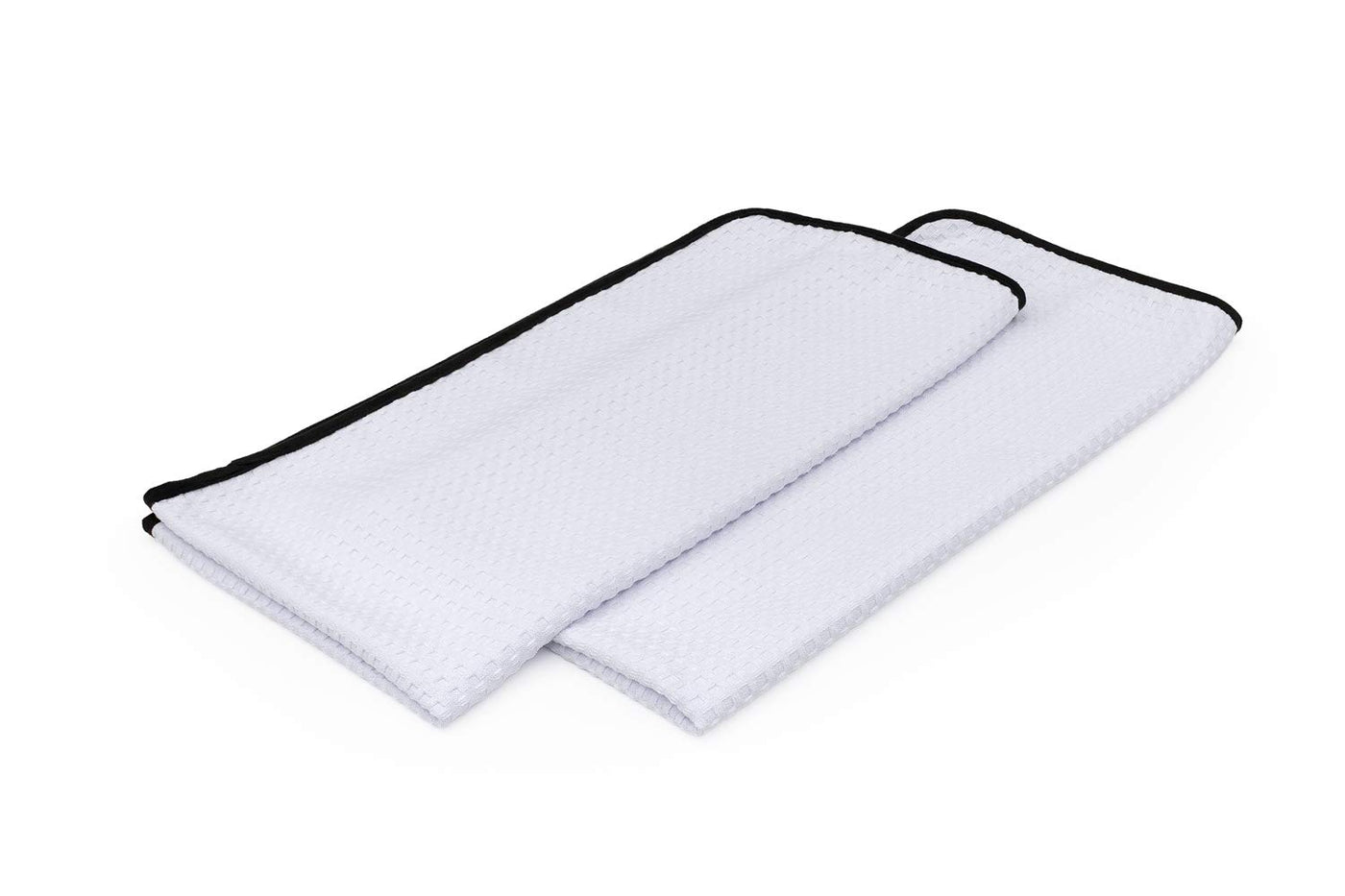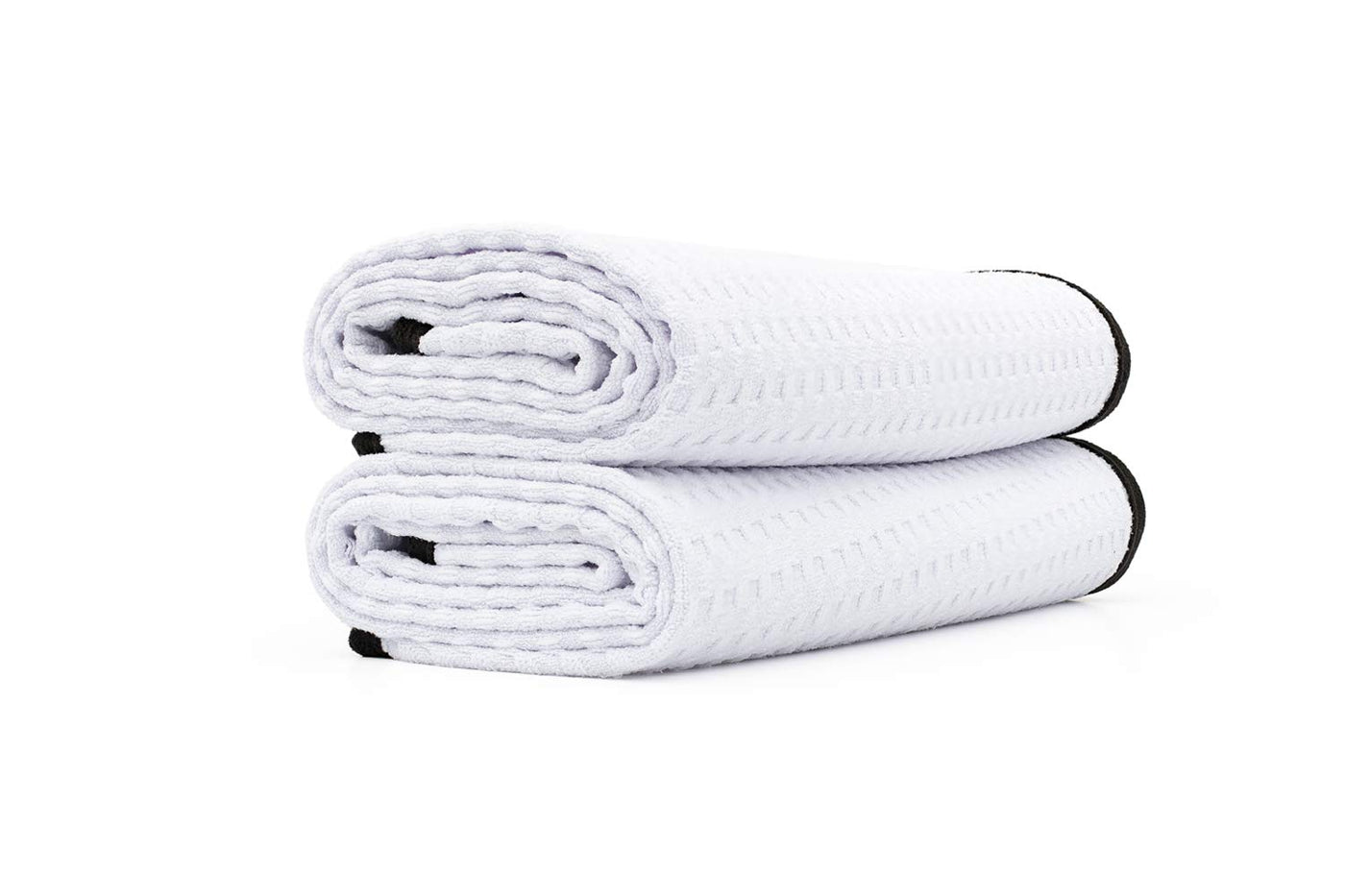 The Rag Company - Dry Me A River - Professional Korean 70/30 Blend Microfiber Waffle-Weave Drying & Detailing Towels, Soft Suede Edges, 390Gsm, 20In X 40In, White (2-Pack)