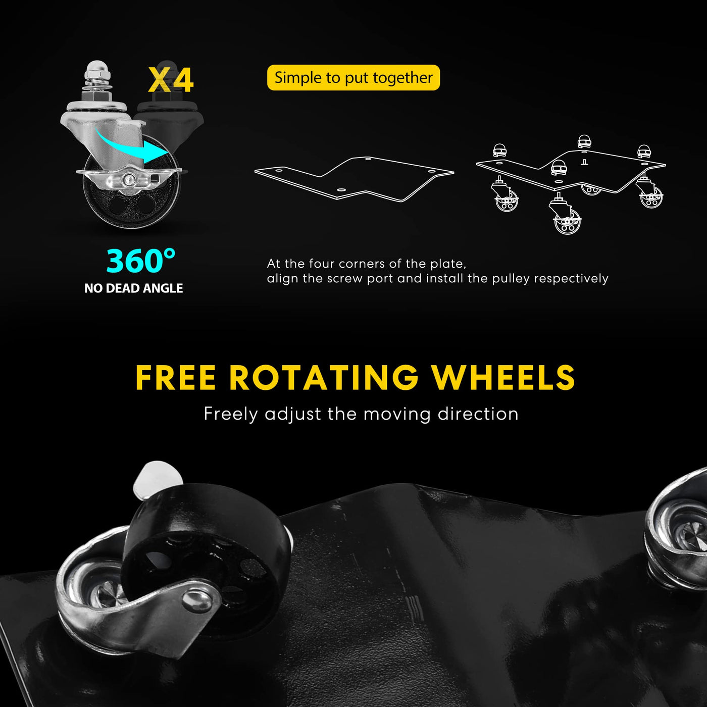 Moving a car is sometimes more logical than working your way around it, and good car dollies (or tire skates) will make rotating or storing a vehicle easier than you ever thought. VIVOHOME Vehicle Dollies are well-designed and able to stand up to the weight of any vehicle you need to use your garage car dolly with.