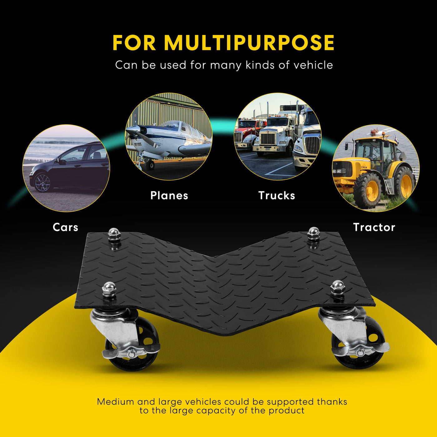 Q: Can these dollies be used for vehicles other than cars?A: Absolutely! The VIVOHOME Wheel Dollies are versatile and can be used for various vehicles, including trucks, trailers, motorcycles, ATVs, and even lawnmowers.