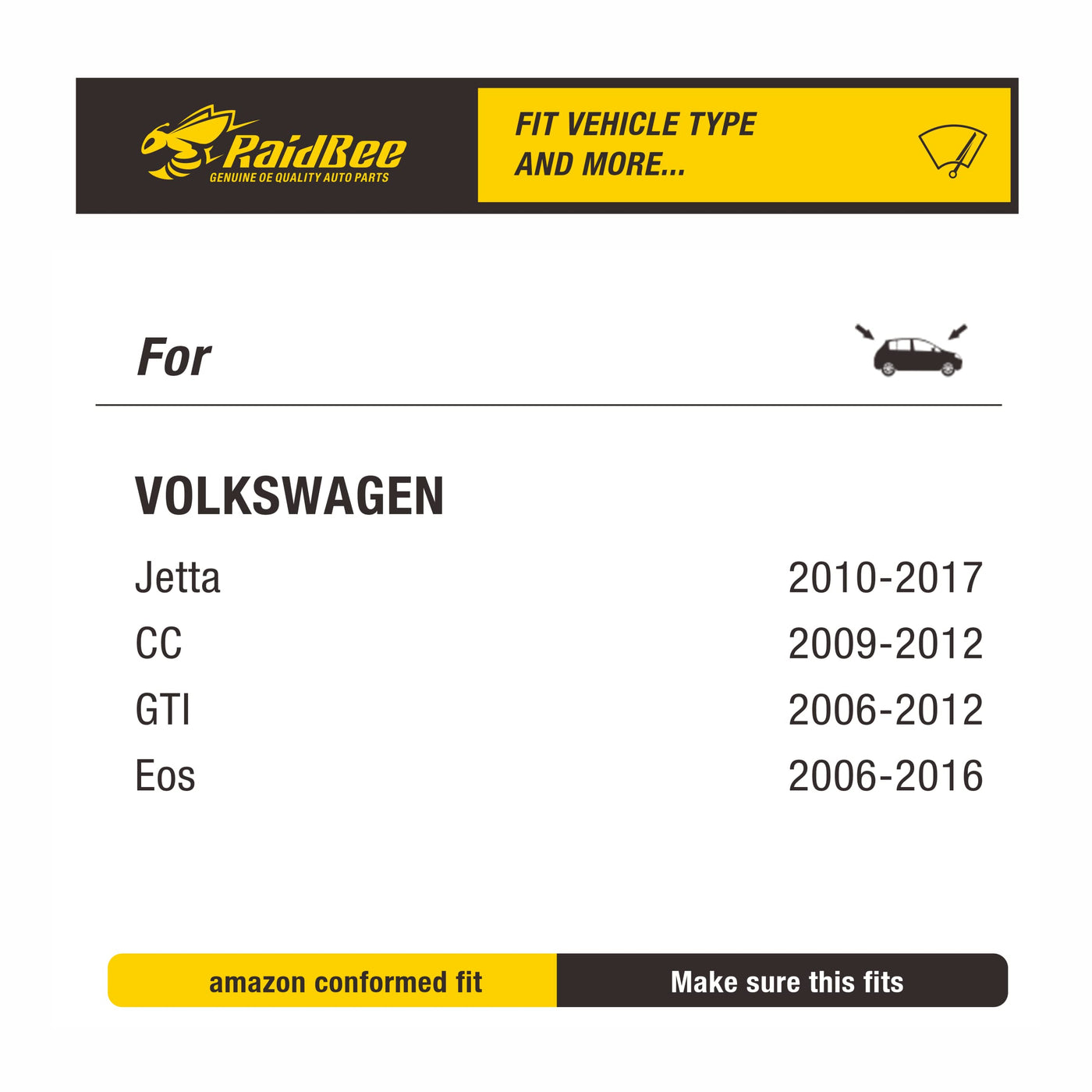 Q: What vehicles are compatible with the Wiper Blade 24"/19"?A: This Wiper Blade is a replacement specifically designed for Volkswagen Jetta (2007-2010), CC (2009-2012), GTI (2006-2012), and Eos (2006-2016). Ensure compatibility by checking your vehicle model before purchase.