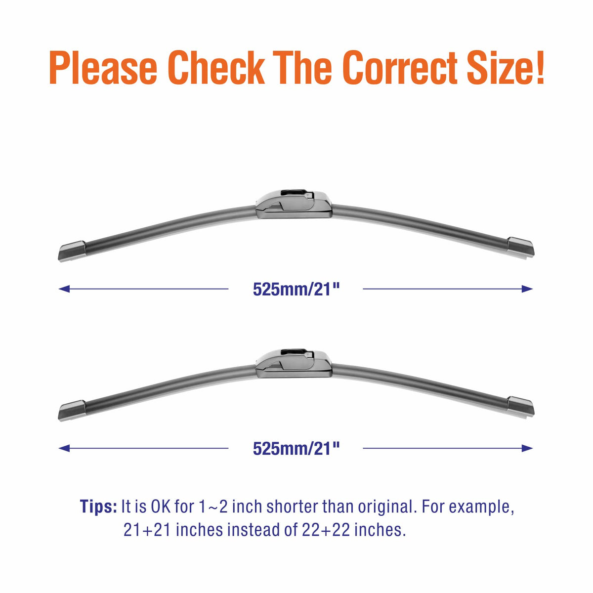 Wowiper 21 Wiper Blades 2 Pack Replacement For Jeep Grand Cherokee 2010-1999 Patriot 2017-2007/Chrysler Corvette 2013-2005 /Vw B