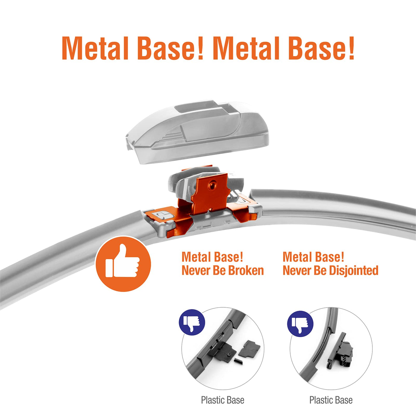 Q: What are the key features of WOWIPER Windshield Wiper Blades?A: WOWIPER Windshield Wiper Blades feature a unique metal base for enhanced stability, OE quality materials that outperform OEM standards, and a convenient 2-pack bundle for easy replacement of both driver and passenger side blades.