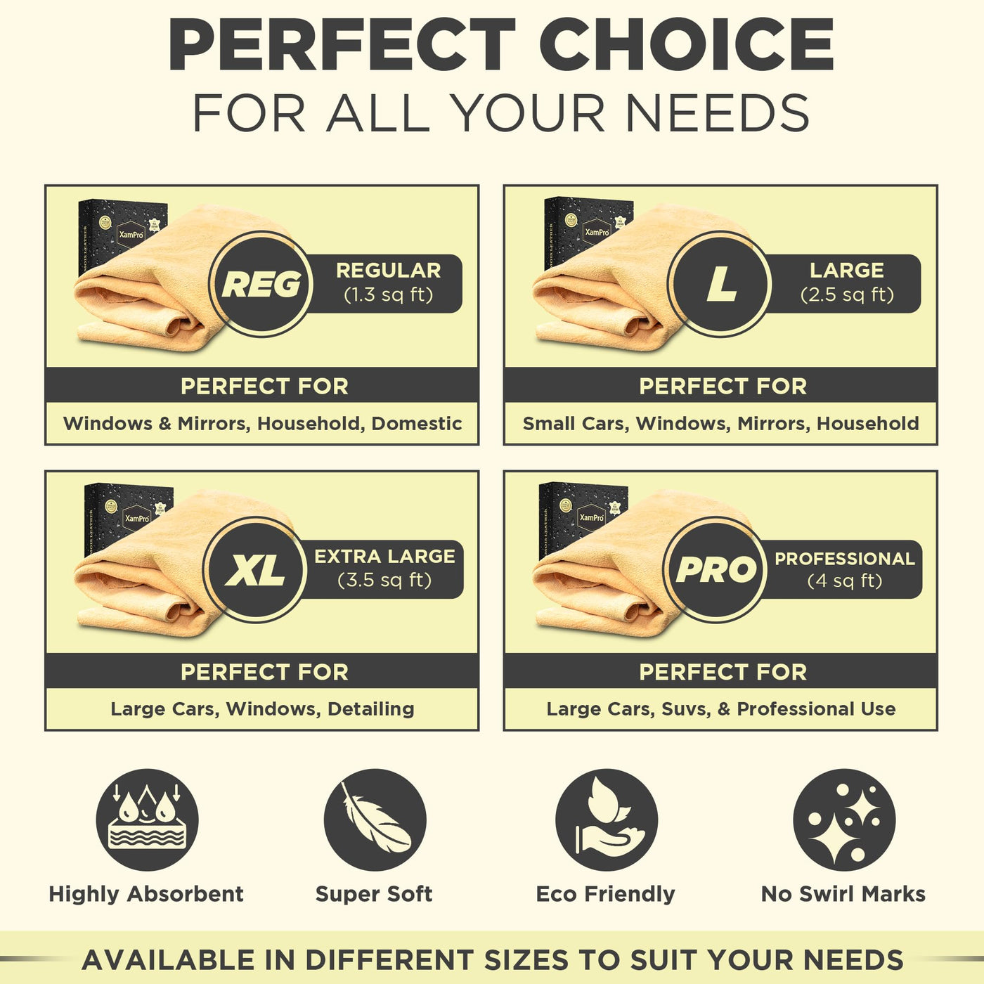 XamPro - Professional 4.5 sq ft English Premium Natural Chamois - Clean Like a pro with Our Biggest and Best Chamois - Superb Dr