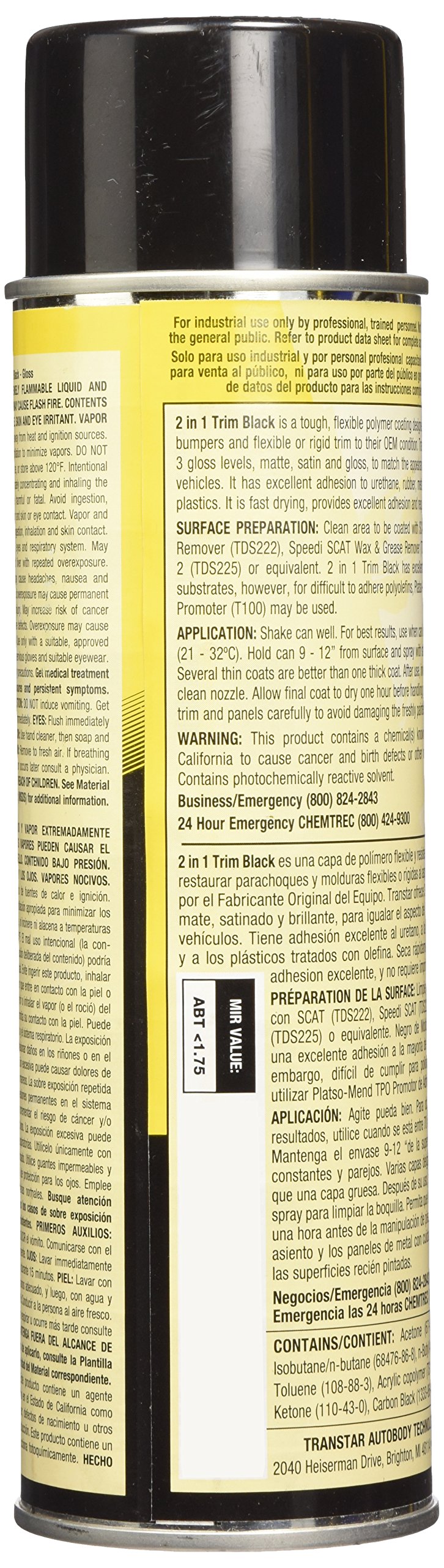 2 In 1 Trim Black Is A Tough, Flexible Polymer Coating Designed To Restore Bumpers And Flexible Or Rigid Trim To Their Oem Condition. Transtar Offers 2 Gloss Levels, Matte And Gloss, To Match The Appearance On Most Vehicles. Excellent Adhesion To Urethane, Rubber, Metal And Treated Olefin Plastics. Fast Drying, Provides Excellent Adhesion And Requires No Priming.