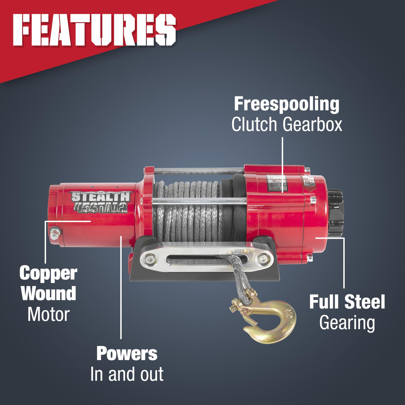 Stealth Winches 4500Lb Utv Atv Winch, 12 Volt Electric Winch With 2 Wireless Remotes And Synthetic Rope, Perfect For Towing Boat