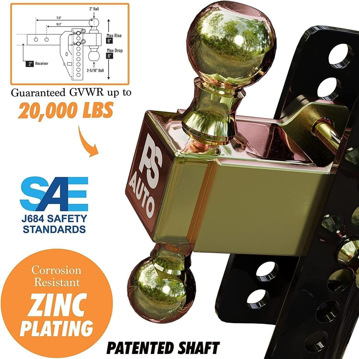 Adjustable Drawbar Trailer Hitch - 20,000 Lbs, Fits 2 And 2-5/16 Inch Balls, Us Gov Tested & Certified, For Rv Towing, Motorcycl