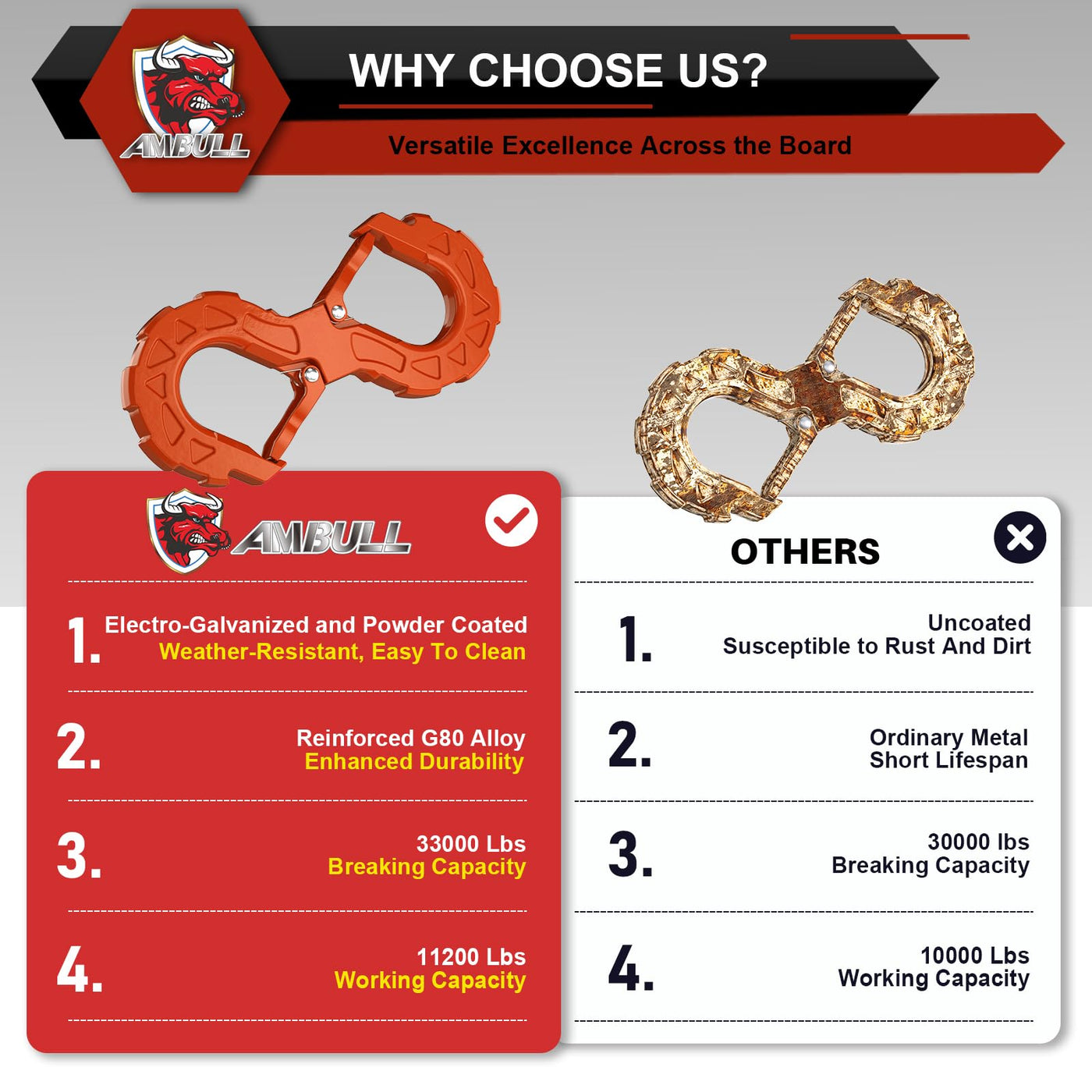 Ambull 3/8 Tow Hook, Winch Hook For Off-Road Recovery, Towing Shackle 33000 Lbs, G80 Heavy Duty Strength Integrated Winch Quick