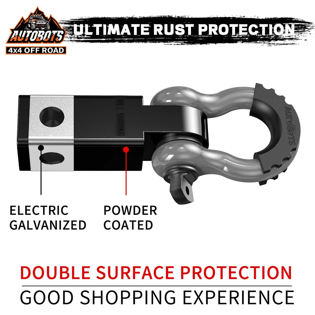 AUTOBOTS Tow Hitch Receiver 2'', 45,000 Lbs Break Strength Shackle Hitch Receiver with 5/8'' Screw Pin, 3/4 Shackle, Towing Acce