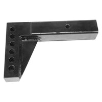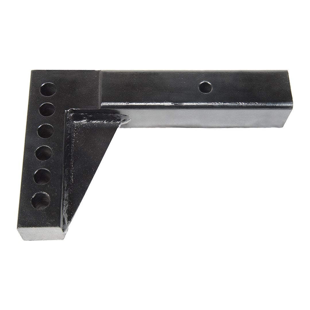 Q: How does the drop and rise adjustment work on this hitch shank?A: This hitch shank features a rise of 4-1/4 inches and a drop of 6-3/4 inches, allowing for versatile adjustments to match the height of your trailer coupler for optimal towing performance.