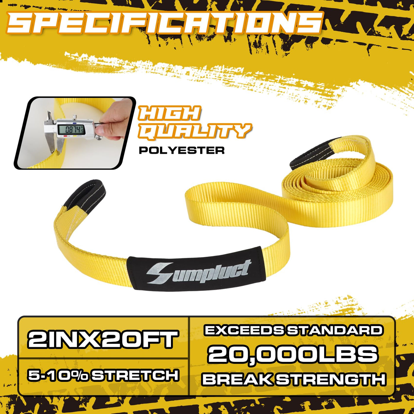 Sumpluct Recovery Tow Strap 2In X 20Ft Exceed Heavy Duty 25,000 Lbs Break Strength, Use For Emergency Towing Rope, Tree Saver, W