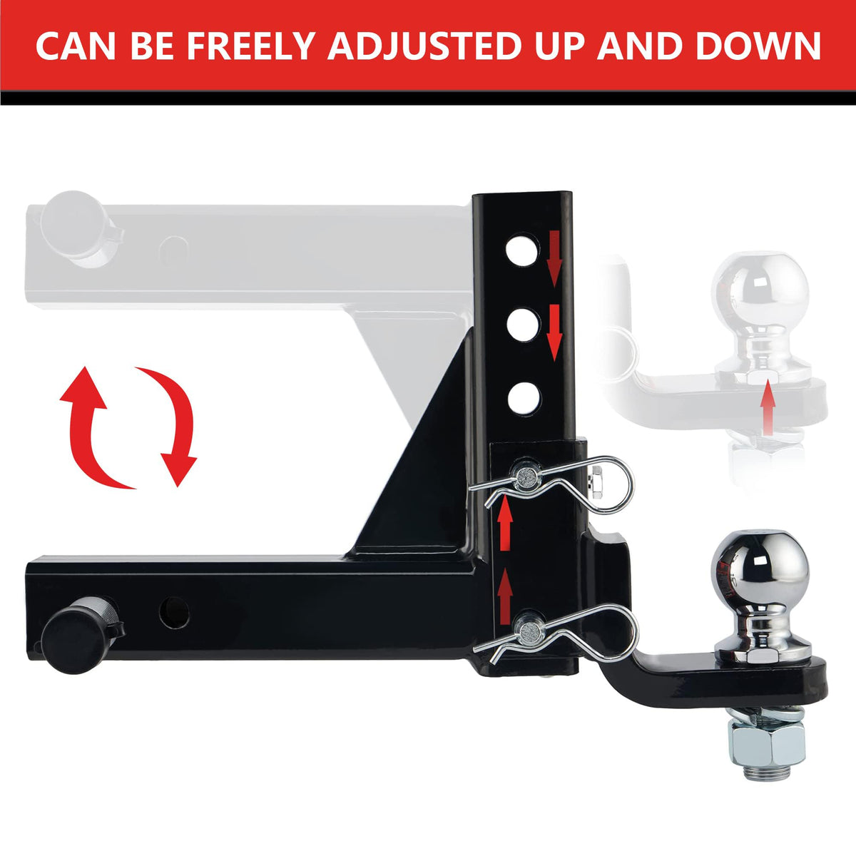 Tyt Adjustable Trailer Hitch Ball Mount, 2'' Towing Ball 7500 Lbs, 9-1/2'' Drop And 8-1/4'' Rise, Fits 2-In Receiver With 2 Pin&