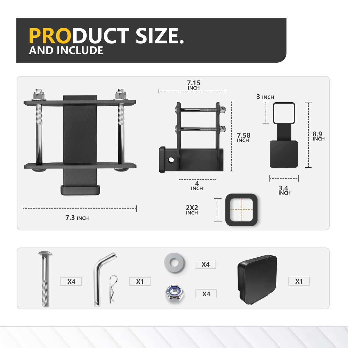 Yzona Rv Bumper Hitch Receiver, 2'' Tow Hitch Trailer Fits 2 Inch To 4 Inch Rear Beams, 3500 Lbs Capacity Upgrade Towing Adapter