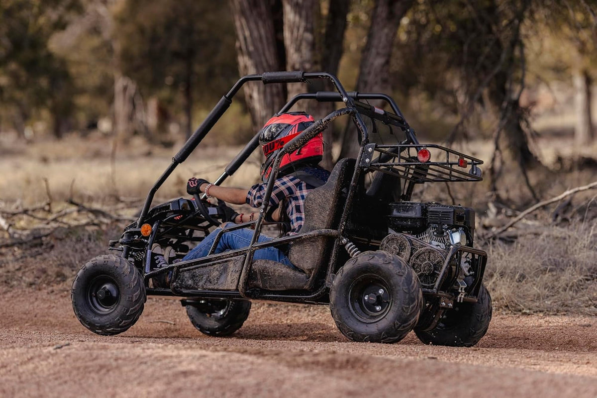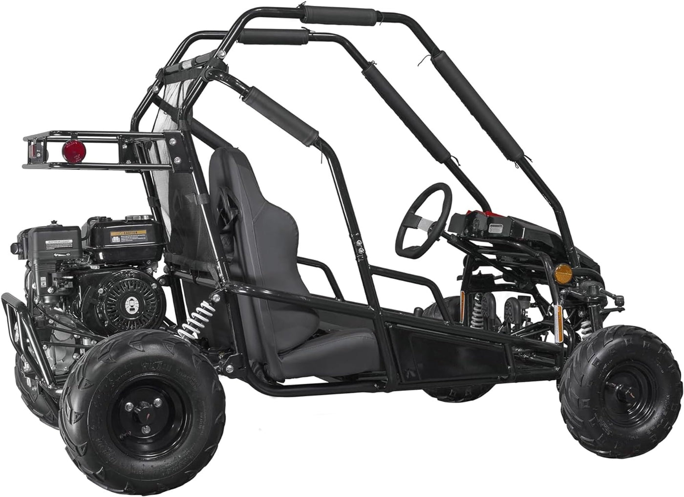 Experience the thrill of off-road adventures with the Coleman GK200 Go-Kart. Powered by a robust 196cc engine, this dual-seat go-kart is designed for both fun and performance. Whether you're navigating rugged trails or cruising through open fields, the GK200 delivers a smooth and exhilarating ride. Powerful 196cc engine provides ample power for tackling various terrains. Dual Seat Design comfortably accommodates two riders with safety harnesses for added security. Equipped with low-pressure tires and all-wheel disc brakes for superior control and stability. Built with a sturdy frame and padded roll cage to ensure safety and longevity. Features independent front suspension and rear shocks for a comfortable ride over bumps and rough surfaces. Illuminate your path for safe driving in low-light conditions. Perfect for outdoor enthusiasts and adventure seekers, the Coleman GK200 is your ticket to unforgettable off-road experiences. Get ready to explore the great outdoors like never before.