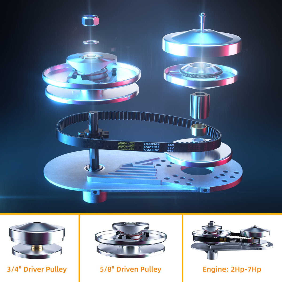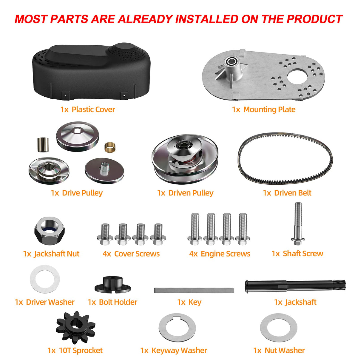 Ameetaa's Go Kart Torque Converter Clutch is a replacement kits for the Comet TAV2 go-kart 30 series. This kit comes with jackshaft sprockets for the 10T #40/41/420 chain. It is made of high quality iron and aluminum, which is sturdy and durable.With this clutch,it can help you get more power out of your small engine by reducing engine load and allows higher speeds out of your small engine,smoother acceleration. Specifications: - Material: Iron & Aluminum - Package Dimensions: (13.78 x 13.78 x 7.48)'' / (35 x 35 x 19)cm (L x W x H) - Weight: 11.24 lbs / 5.1 kg - Fits: All engines with a 3/4 inch straight crankshaft - Sprocket teeth: 1 x 10 Tooth Sprocket for #40 #41 #420 Chain (Chain not included) - Fitment: Go Karts 30 Series - Replacement:Comet, Predator, Manco and more - Front Drive Clutch Bore: 3/4''(19mm) - Rear Drive Clutch Bore: Overall Diameter 6'' (5/8'' driven pulley) - Features:Durable, Maximum torque, Wear-resisting, Fast heat dissipation Package Includes: 1 x Drive belt 1 x 3/4'' Driver pulley 1 x 5/8'' Driven pulley 6'' diameter 1 x Plastic Assy Cover 1 x Full Mounting hardware Kit 1 x 10 Tooth Sprocket for #40 #41 #420 chain (Chain not included) 1 x Aluminum Mounting Bracket Plate