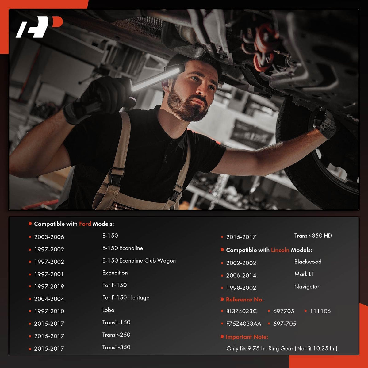 A-premium Differential Covers are an ideal choice to replace your broken Differential Covers . All Differential Covers meet or exceed OEM specifications. Due to high manufacturing standard, it will come with one year quality guarantee. Application: Compatible with Lincoln Navigator 1998-2002 Rear Compatible with Lincoln Mark LT 2010-2011 Rear 9.75 In. Ring Gear; Mexico Region Compatible with Lincoln Mark LT 2006-2008 Rear 9.75 In. Ring Gear Compatible with Lincoln Blackwood 2002 Rear 9.75 In. Ring Gear Compatible with Ford Lobo 1997-2010 Rear 9.75 In. Ring Gear; Mexico Region Compatible with Ford F-250 2000 Rear 9.75 In. Ring Gear; Mexico Region Compatible with Ford F-250 1997-1999 Rear 9.75 In. Ring Gear; Mexico Region; Lobo Submodel Compatible with Ford F-150 Heritage 2004 Rear 9.75 In. Ring Gear Compatible with Ford F-150 1997-2011 Rear 9.75 In. Ring Gear Compatible with Ford Expedition 1997-2001 Rear 9.75 In. Ring Gear Compatible with Ford E-150 Econoline Club Wagon 1997-2002 Rear 9.75 In. Ring Gear Compatible with Ford E-150 Econoline 1997-2002 Rear 9.75 In. Ring Gear Compatible with Ford E-150 2003-2006 Rear 9.75 In. Ring Gear OEM Number: 697-705, F75Z-4033-AA, BL3Z4033A, F75Z-4033AA Location: Rear Quantity Sold: One Piece