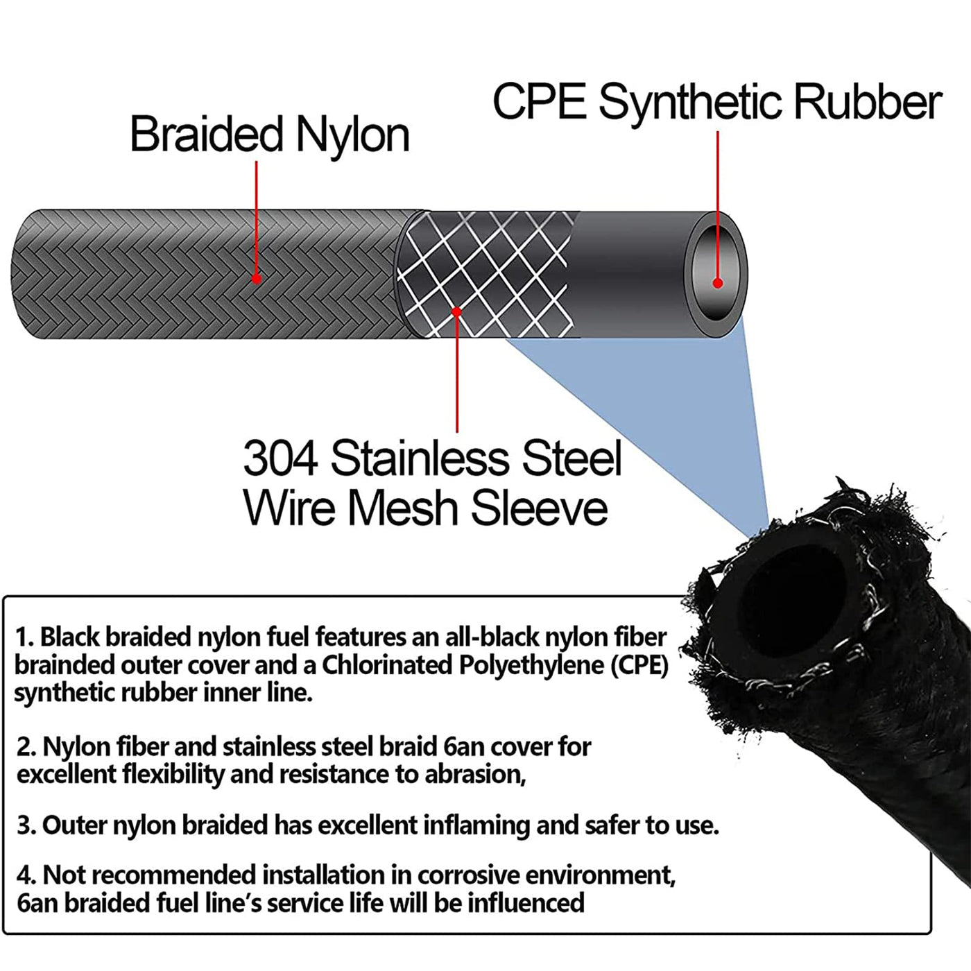 Q: What materials are used in the Autoutfit Transmission Cooler Line Kit?A: The kit features a high-quality construction, with the oil hose made of CPE rubber, reinforced with a layer of 304 steel wire and a nylon outer braid. The hose adapters are manufactured from high-performance aluminum alloy, ensuring durability and reliability.