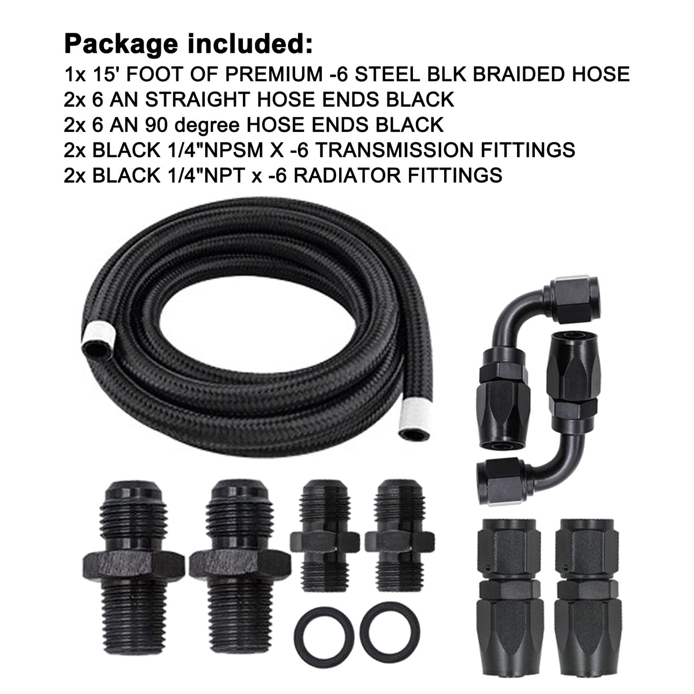 Autoutfit An6 15Ft Automatic Transmission Cooler Line Kit For 4L60E 4L65E - Black Nylon Braided Hose Kit
