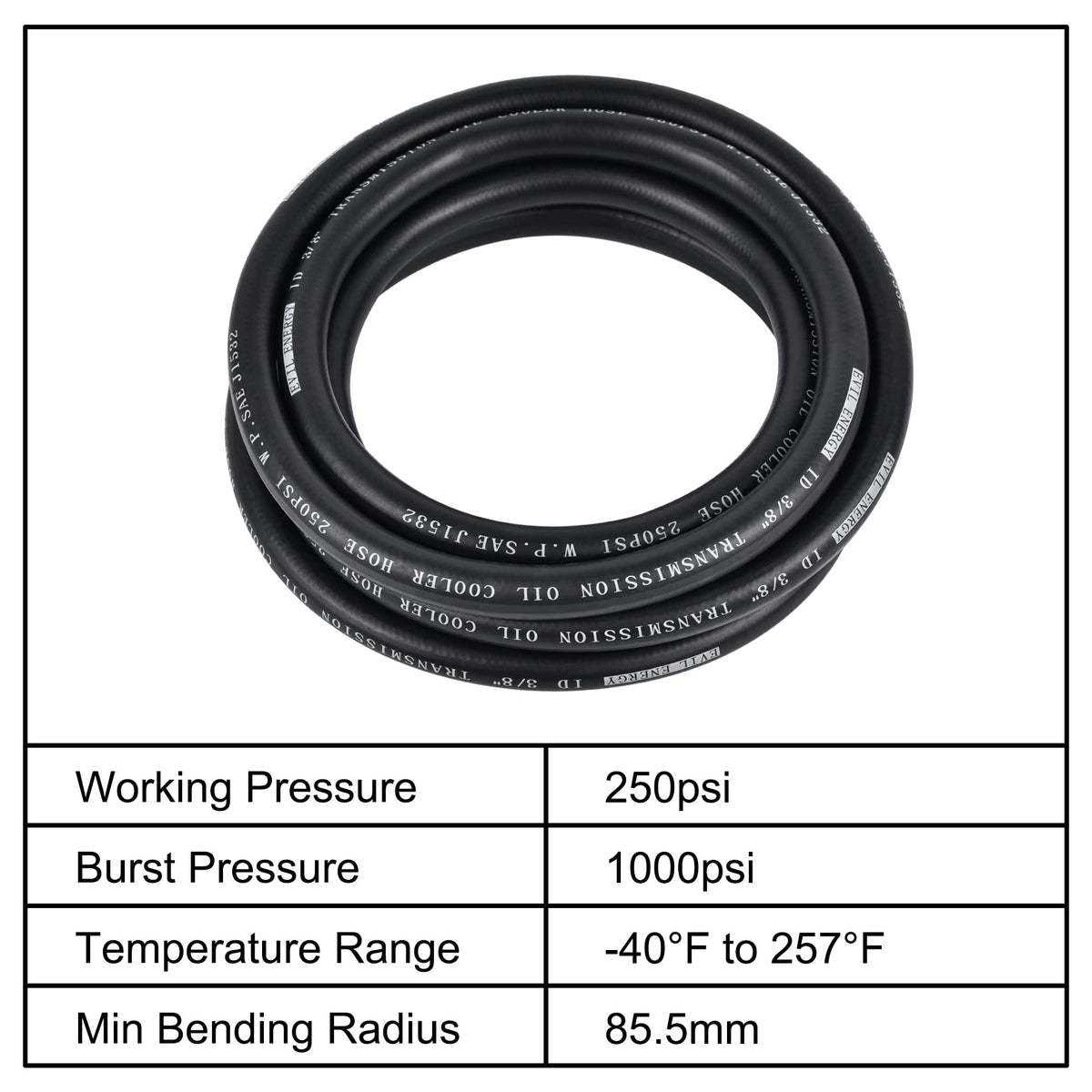 Q: What is the maximum working pressure of the EVIL ENERGY Transmission Oil Cooler Hose?A: The maximum working pressure of the EVIL ENERGY Transmission Oil Cooler Hose is 250 PSI, ensuring it can handle demanding applications.